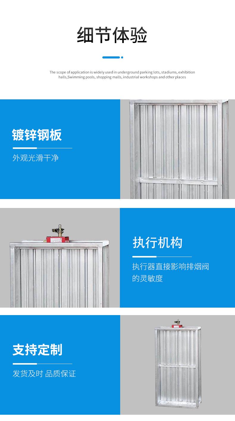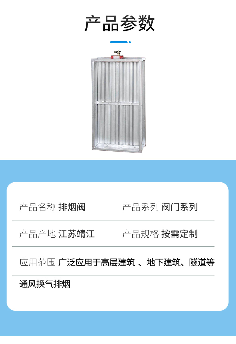 排煙閥安裝在機械排煙系統各支管端部(煙氣吸入口)處,平時呈關閉狀態并滿足漏風量要求,火災或需要排煙時手動和電動打開,起排煙作用的閥門。