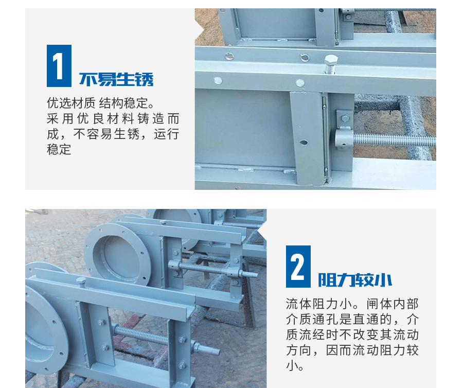 手動(dòng)風(fēng)量調(diào)節(jié)閥采用上裝式結(jié)構(gòu),在高壓、大口徑條件下減少了閥體自身的連接螺栓,增強(qiáng)了閥門的可靠性且能克服系統(tǒng)自重對(duì)閥門正常工作的影響